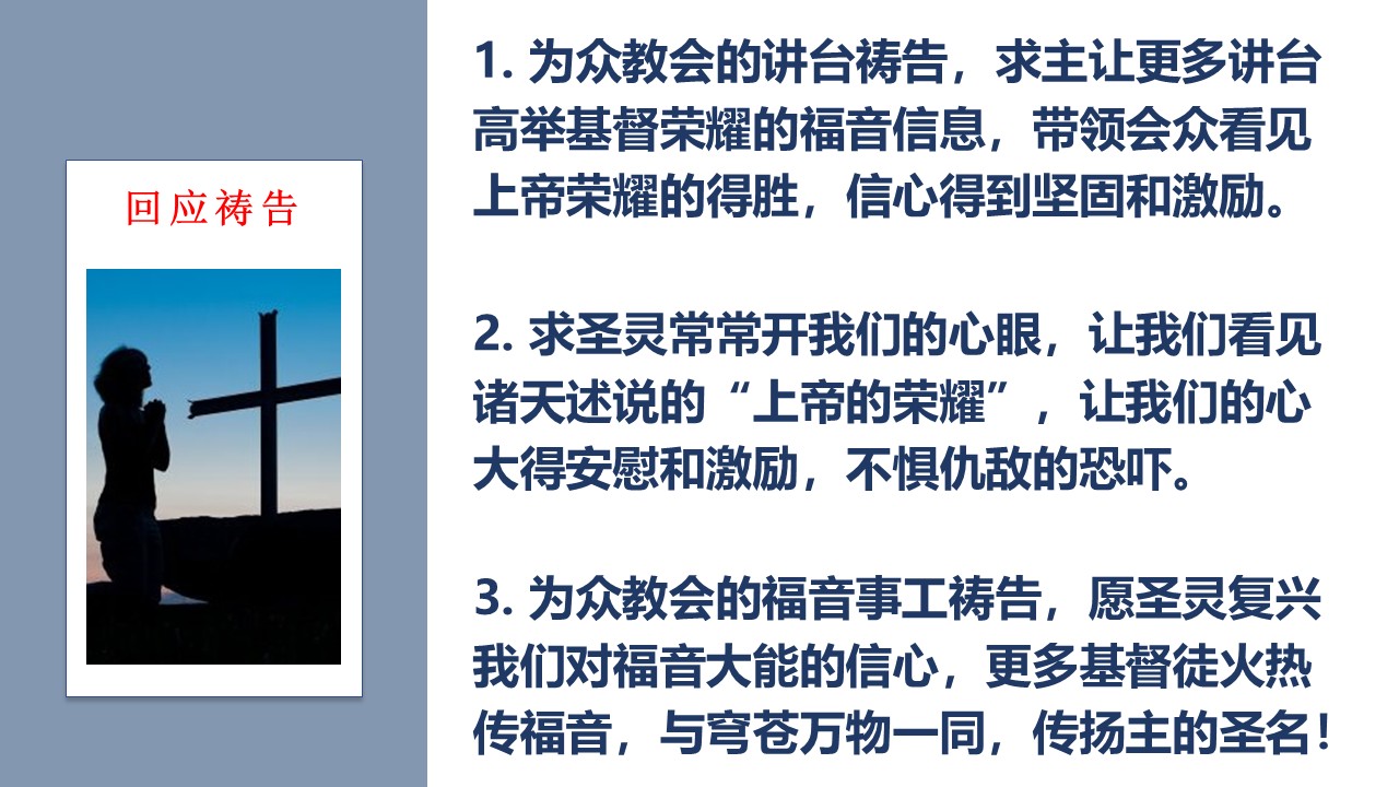 让我们更认识福音的大能,更注重与主同行、与神相交的生命建造,更勇敢为主作见证。