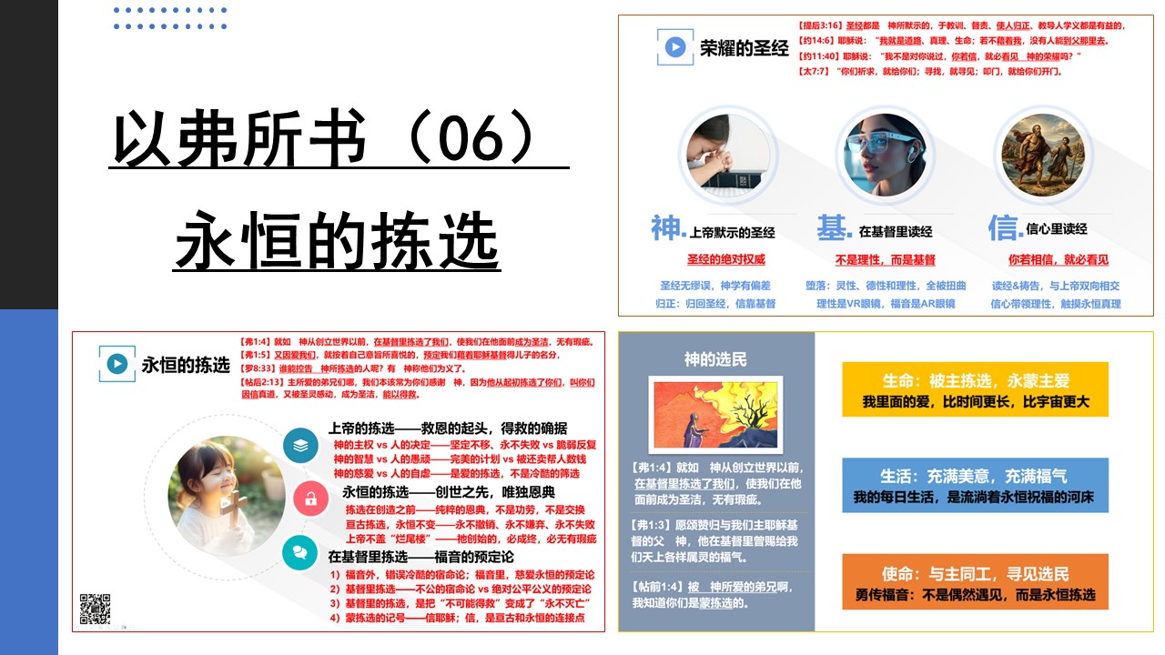 视频整理完成,我们就会把讲道视频共享出来,在此之前,请观看上一讲《以弗所书(06)永恒的拣选》的讲道视频: