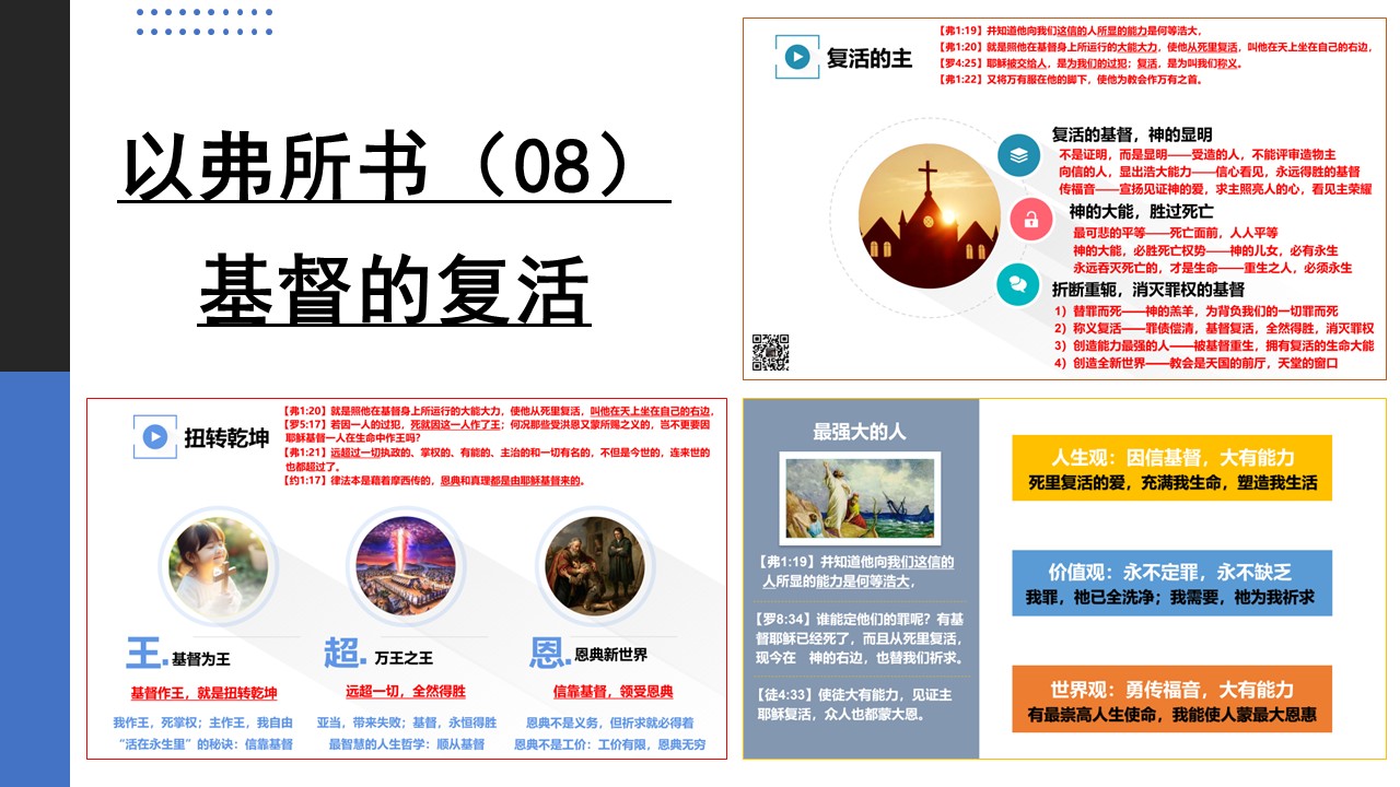 视频整理完成,我们就会把讲道视频共享出来,在此之前,请观看上一讲《以弗所书(08)基督的复活》的讲道视频: